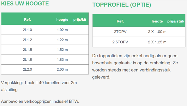 De louisiana lamellen weeft u tussen de mazen van 50mm in uw rechthoekige draadafsluiting. U bindt ze vast met spanbandjes in de daartoe voorziene gaatjes. Indien gewenst kan u ze afwerken met een topprofiel (in optie) voor een piekfijn resultaat.